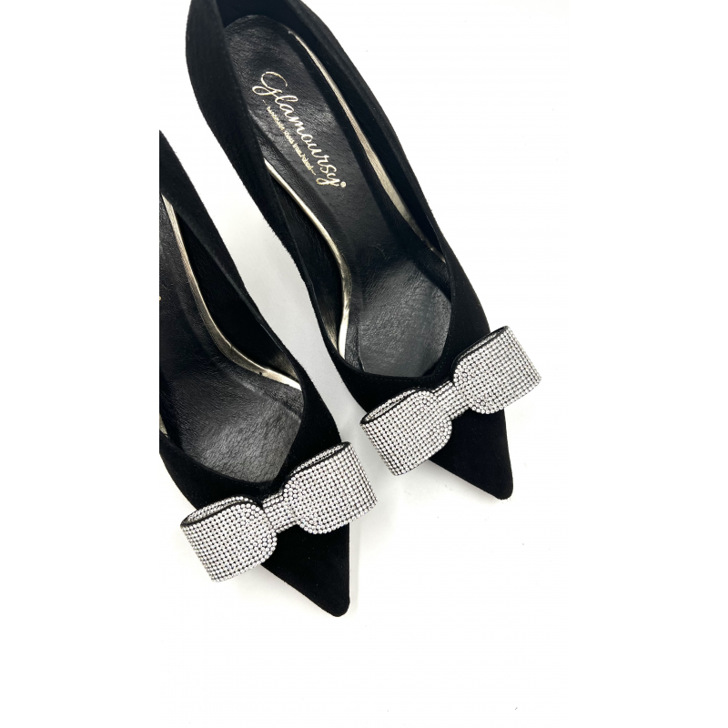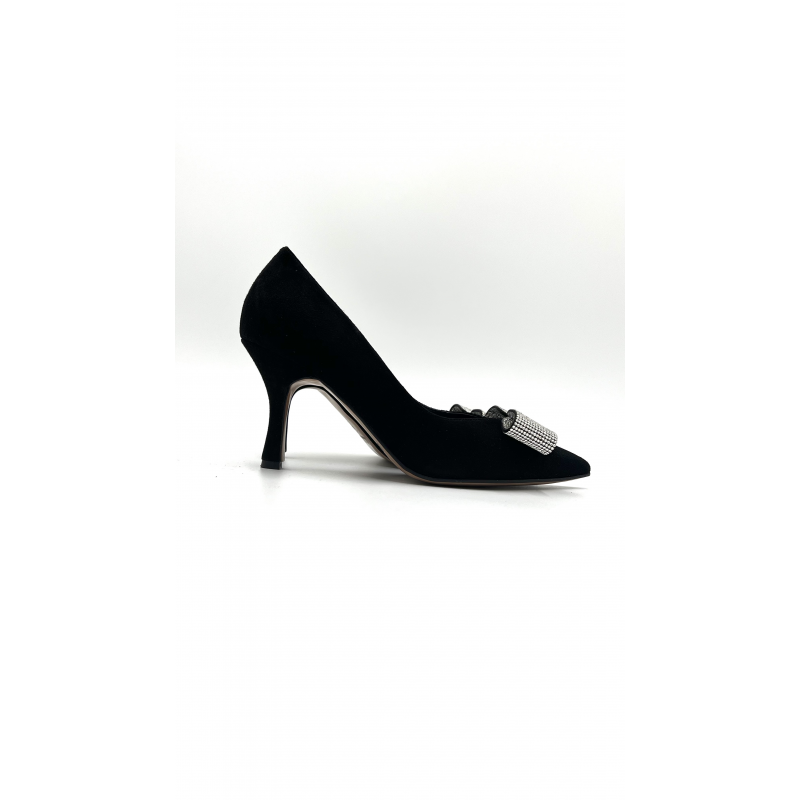 Do classic stilettos have to be in every woman's closet? Probably not necessarily. When getting ready to go out, do you again think about the fact that you are missing the classic, not too high stilettos with a neat nose? Probably quite often. The Feel My Love stiletto model in black suede leather with a coated heel and a beautiful silver bow is a classic in the best sense of the word. A beautiful, delicate stiletto, a seven-centimeter heel and contouring that holds your foot perfectly, and you don't feel like you're standing on your toes all the time. The stiletto tapers more firmly only at the very end of the shoes, so in the midfoot there is no effect of tightly squeezed toes. And because the stilettos are made of soft leather, they gain in comfort with every wear.