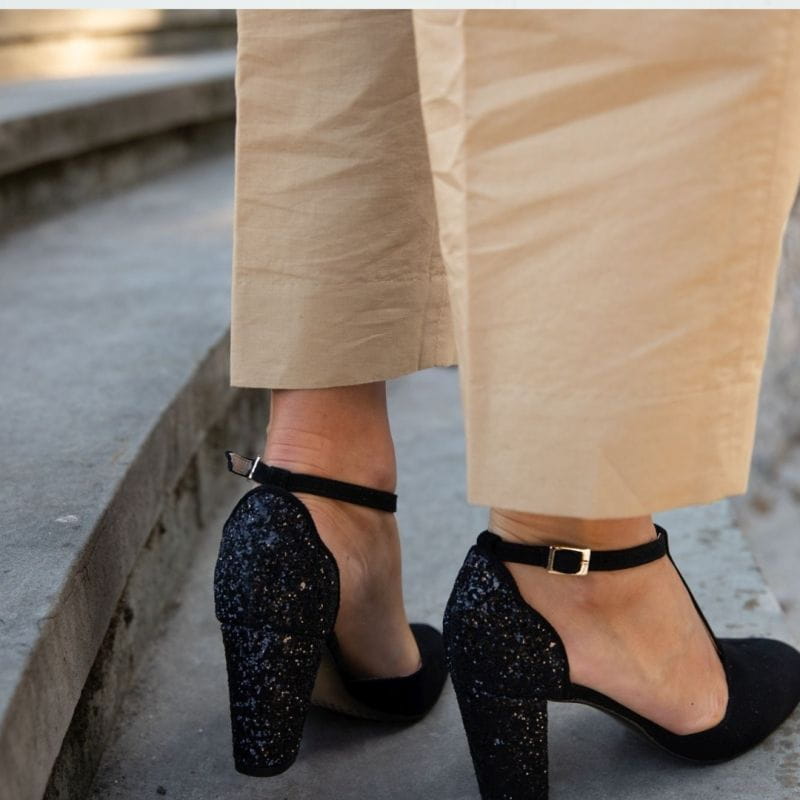 Stable wider heel. Height 7 cm.