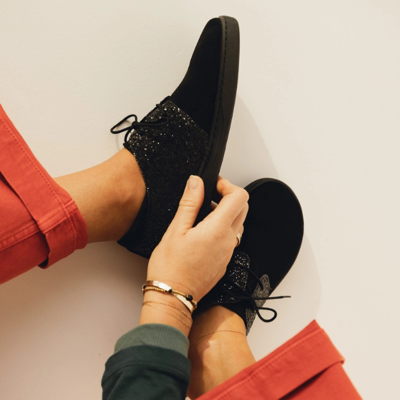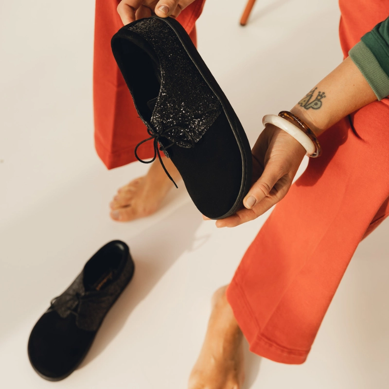 Ten model butów damskich barefoot szyjemy ręcznie w naszej pracowni – z limitowanej partii zamszu w odważny, zwierzęcy print inspirowany wzorem krowiej skóry. Podeszwa jest elastyczna, lekka i płaska (zero drop), by pozwolić Twoim stopom pracować naturalnie – jak boso.