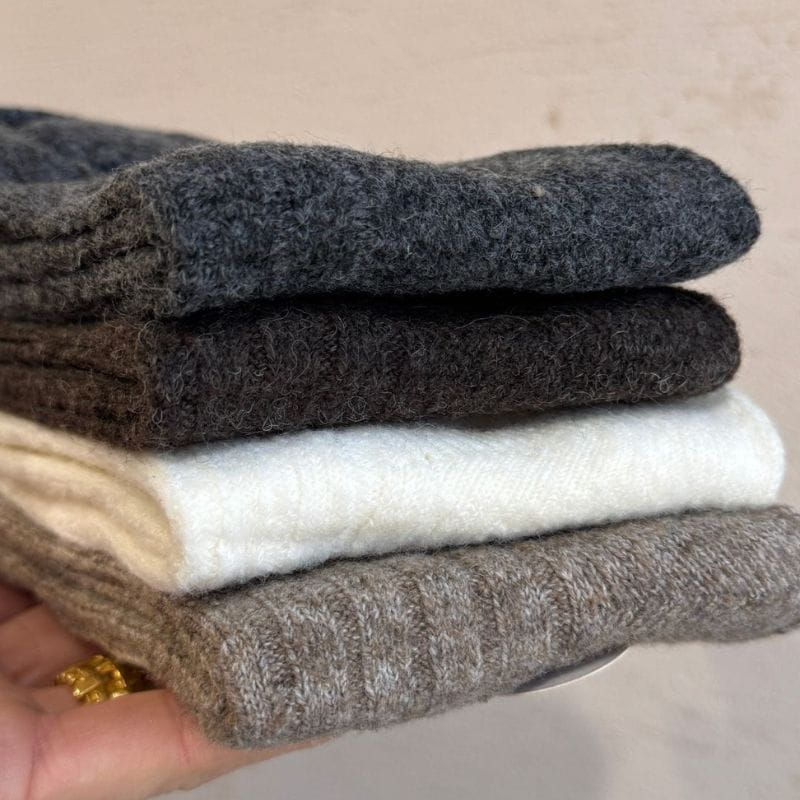 Kaszmir ma niezwykłą zdolność regulacji temperatury - ogrzewa, gdy jest chłodno, i pozwala skórze oddychać, gdy robi się cieplej. Dzięki temu skarpety z kaszmiru są idealne przez cały sezon: zimą miękko otulają, a jesienią i wiosną dają wrażenie lekkości, jakbyś chodziła boso - tylko lepiej.