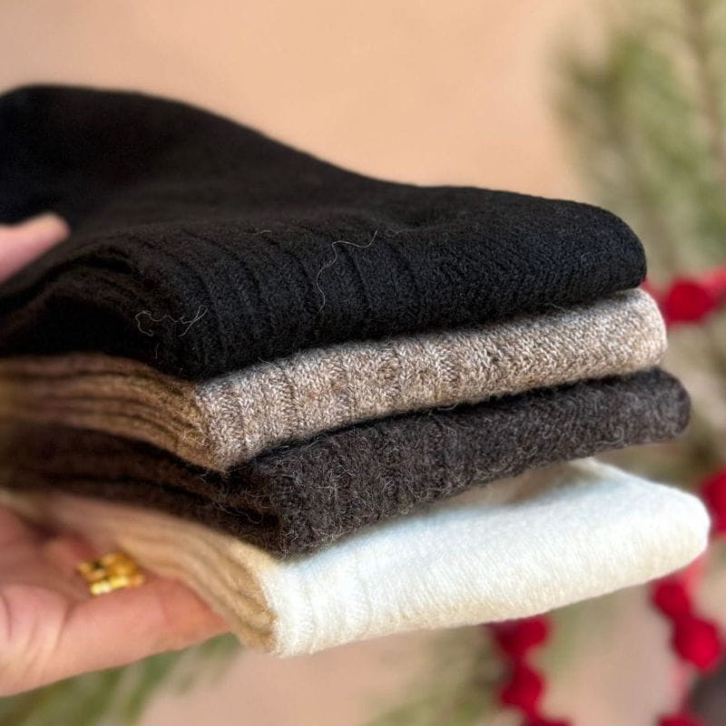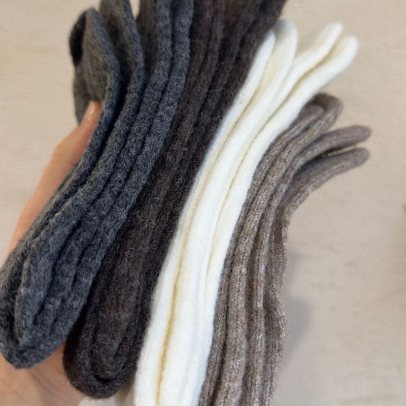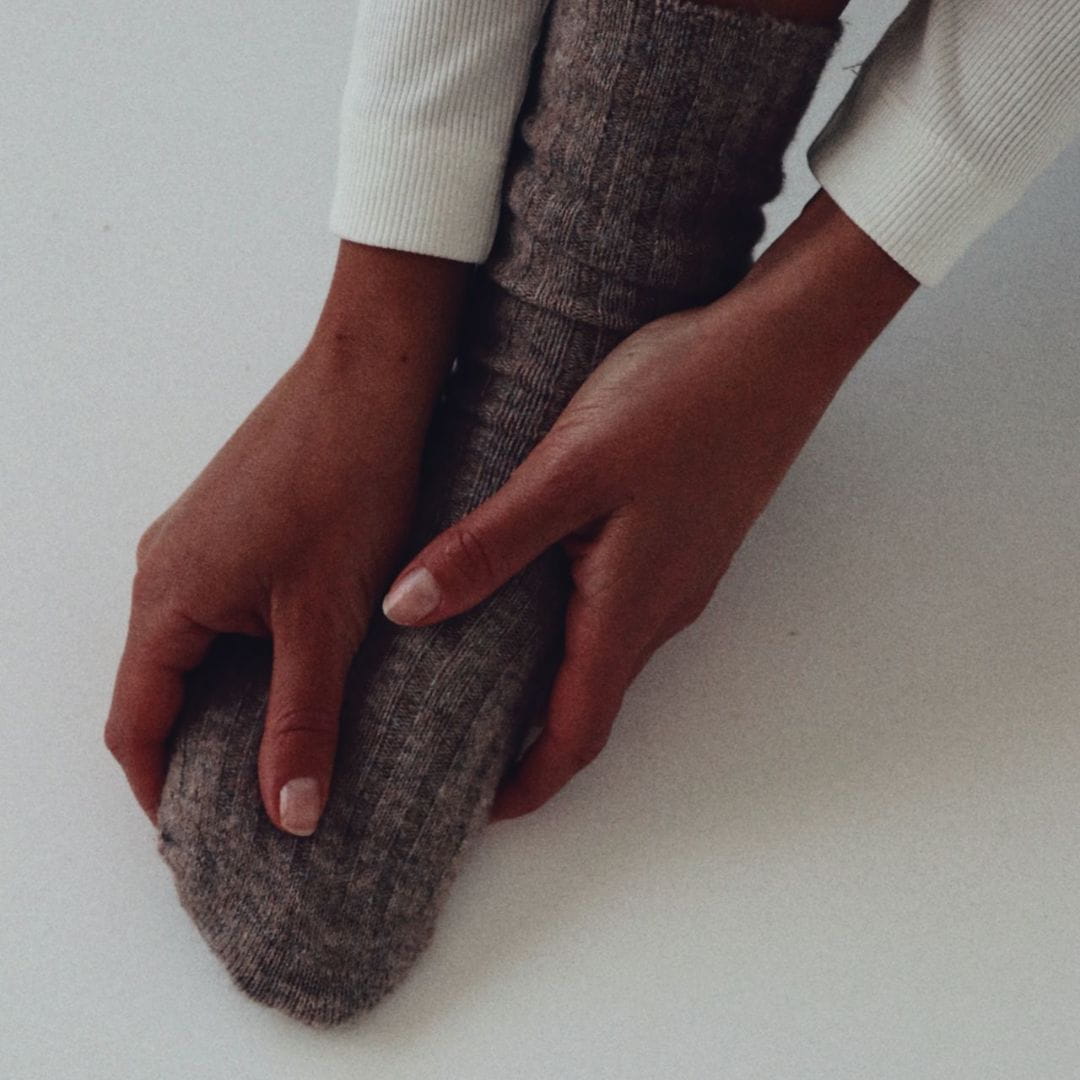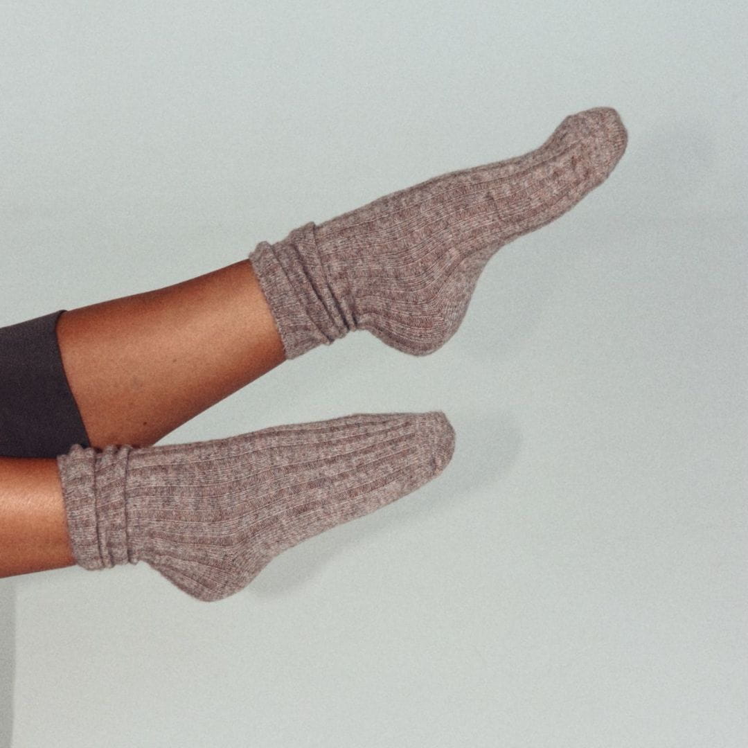 Kaszmir ma niezwykłą zdolność regulacji temperatury - ogrzewa, gdy jest chłodno, i pozwala skórze oddychać, gdy robi się cieplej. Dzięki temu skarpety z kaszmiru są idealne przez cały sezon: zimą miękko otulają, a jesienią i wiosną dają wrażenie lekkości, jakbyś chodziła boso - tylko lepiej.