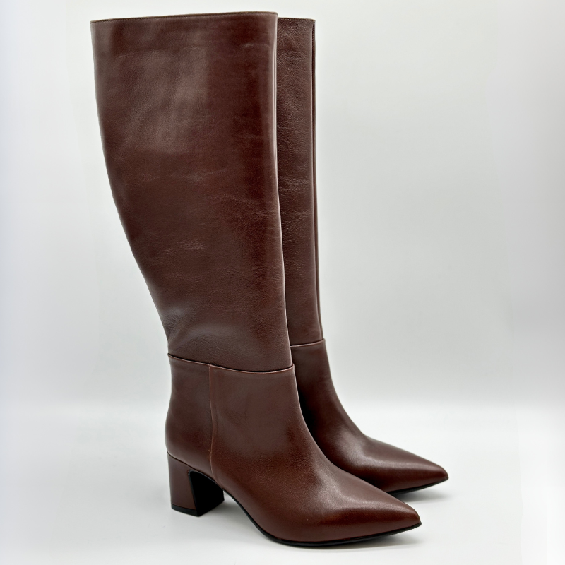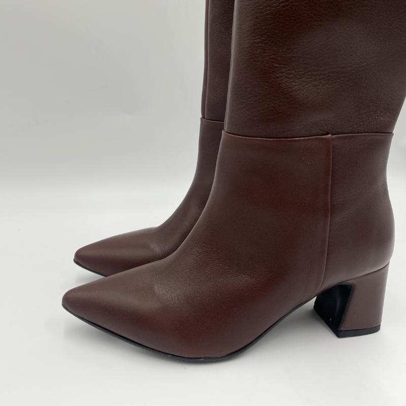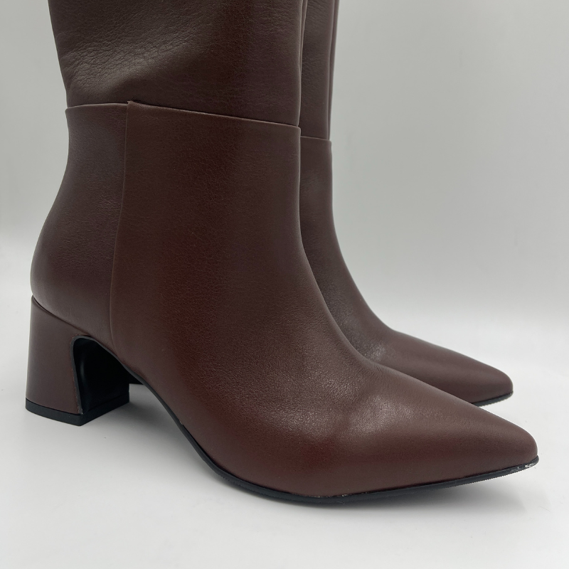 Kozaki damskie skórzane brązowe Lady