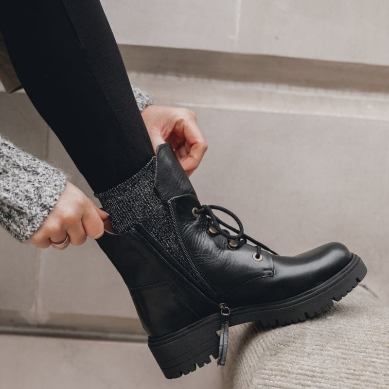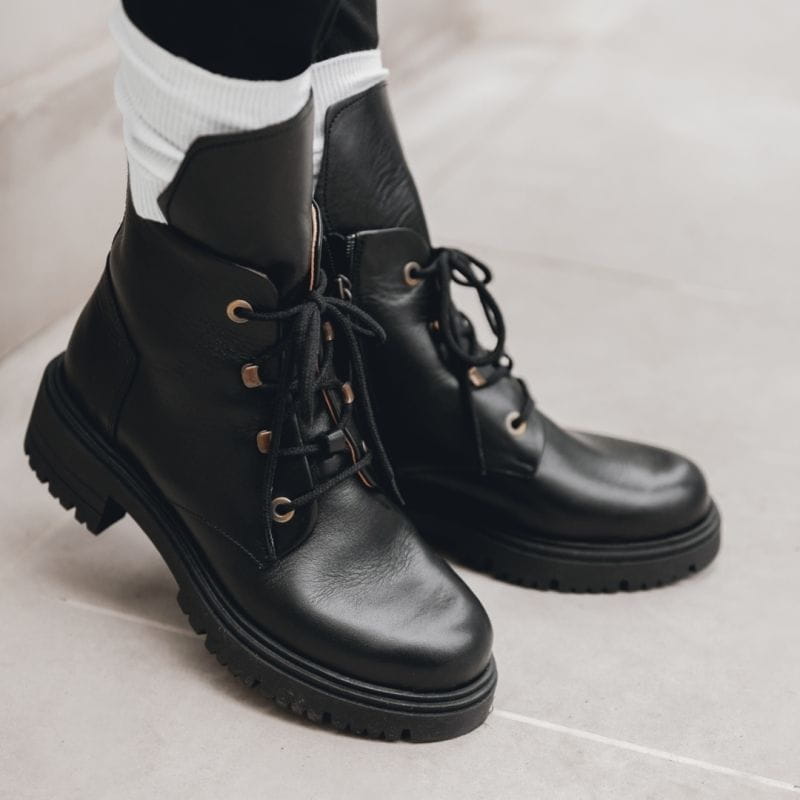 Sznurowane botki damskie skórzane - One Chance