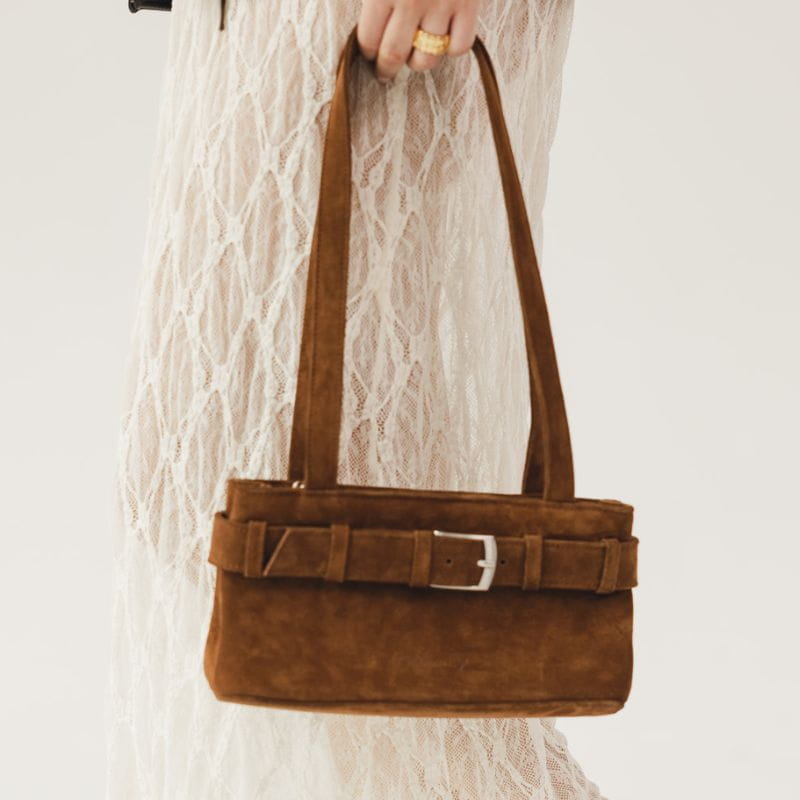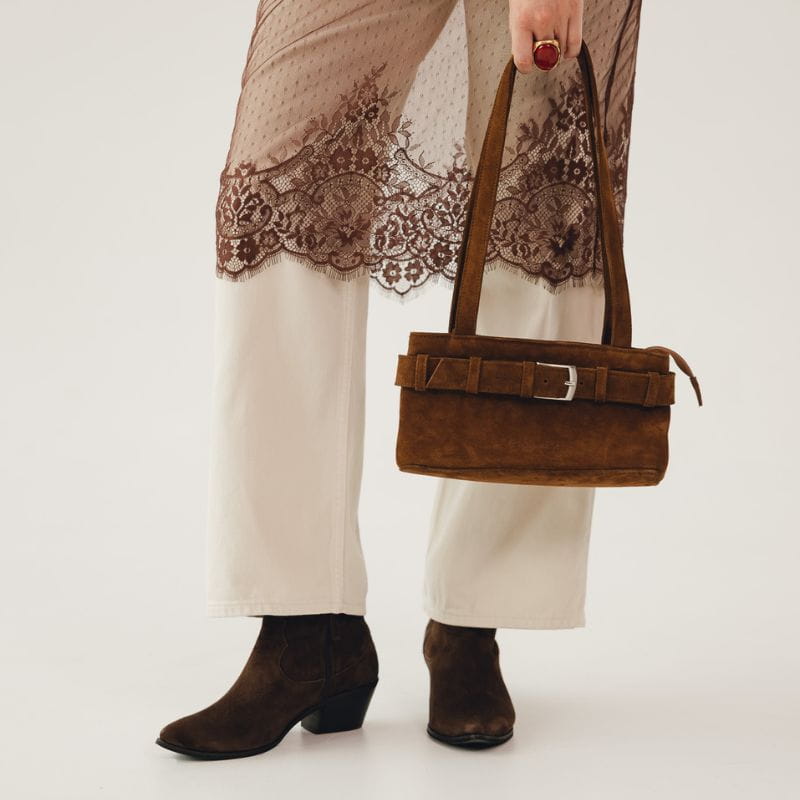 Zamszowa torebka na ramię brązowa - Daily Easy