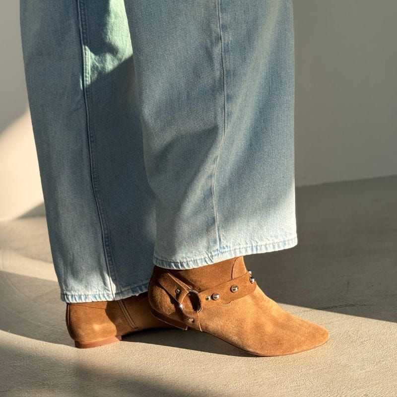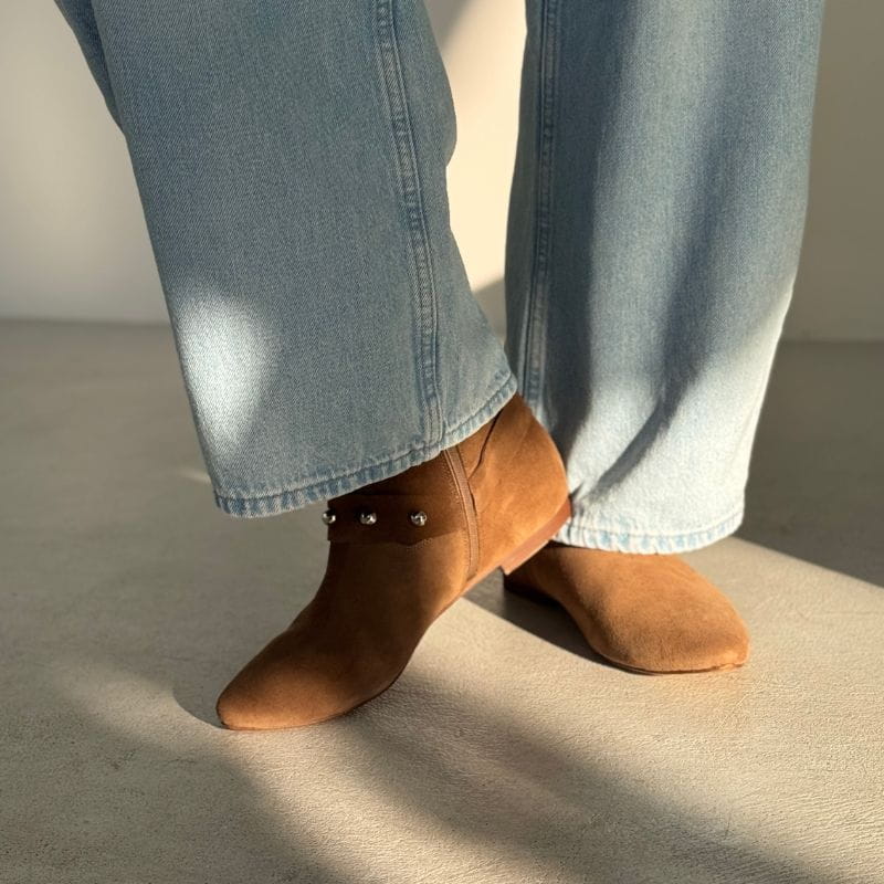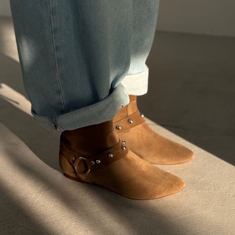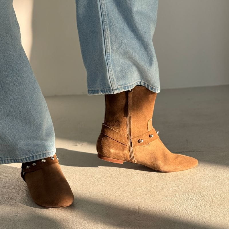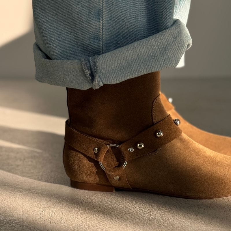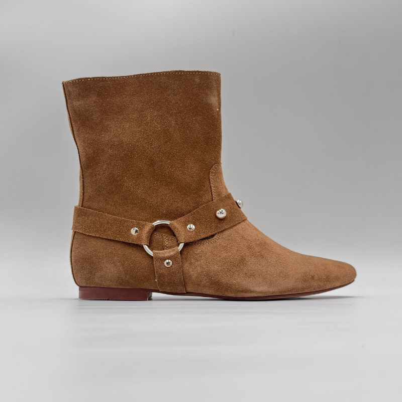 Zamszowe botki brązowe damskie z ćwiekami - Wild Spirit