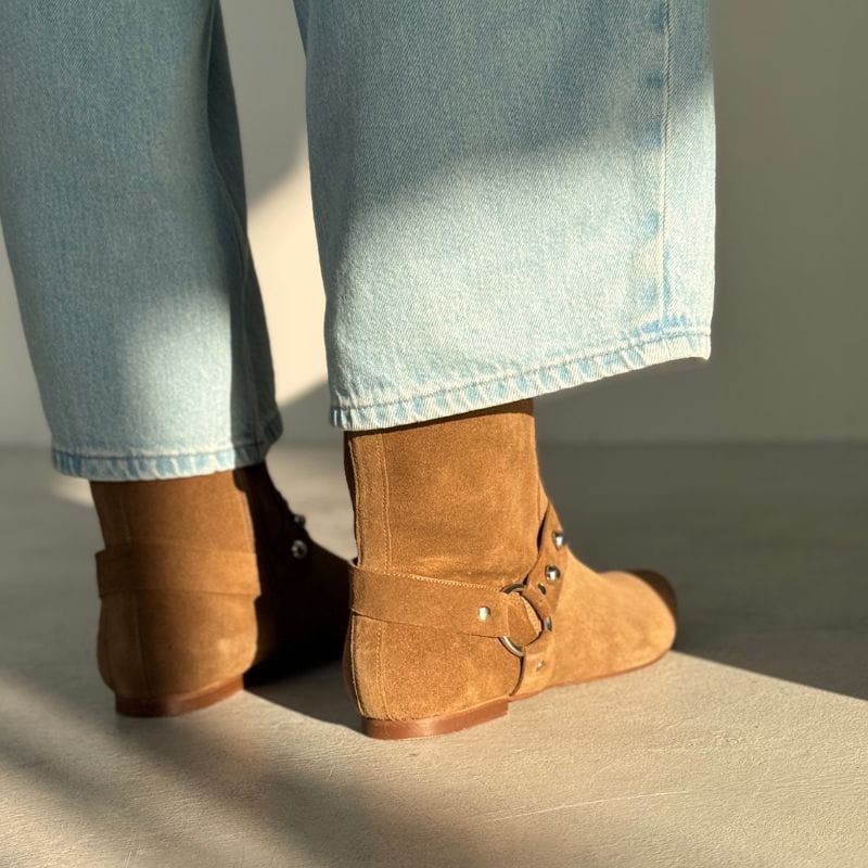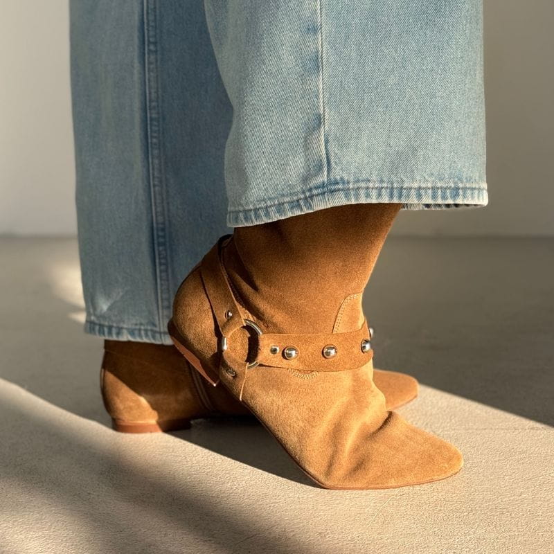 Beżowe zamszowe botki za kostkę damskie - Wild Spirit