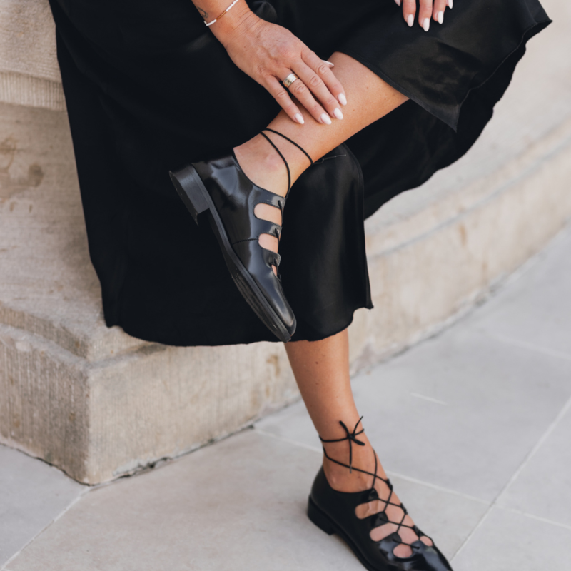 Skórzane baleriny wiązane - Rock Me Baby
