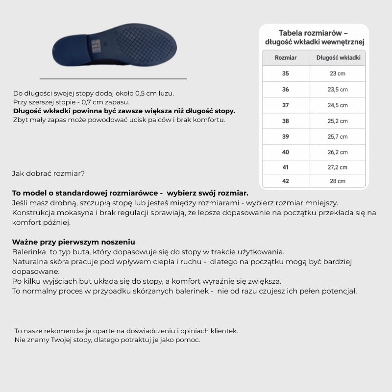 Aby idealnie dopasować rozmiar butów, należy do zmierzonego wymiaru stopy dodać 0,5 cm - to długość wkładki.