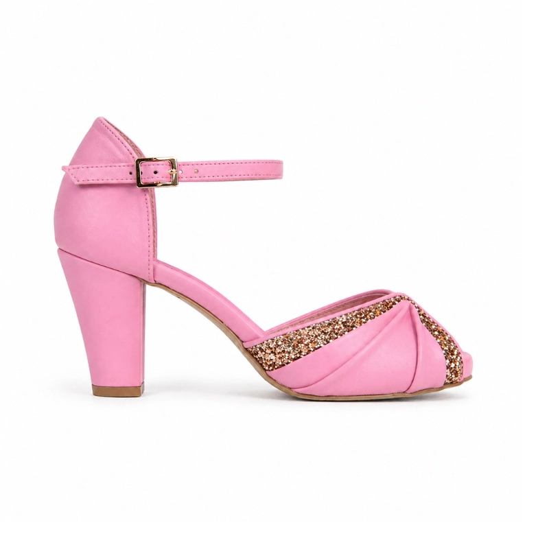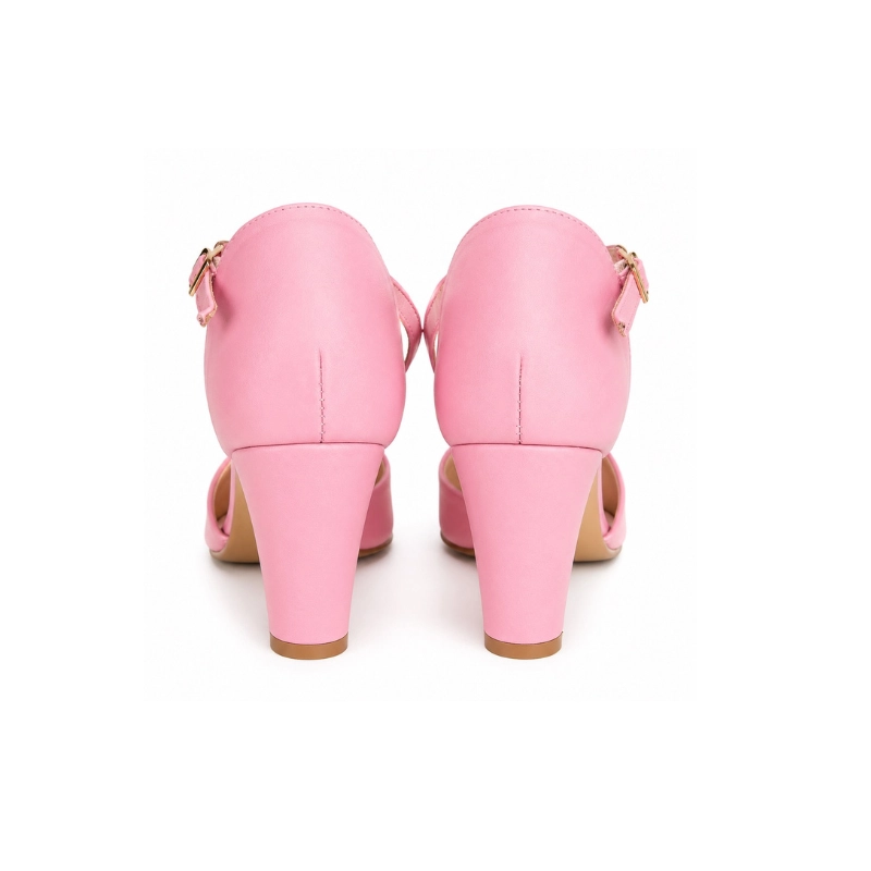 Skórzane sandały na słupku na obcasie 7 cm Pink