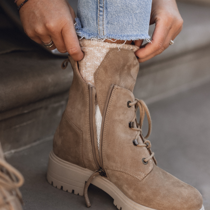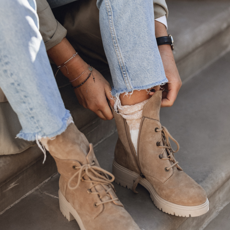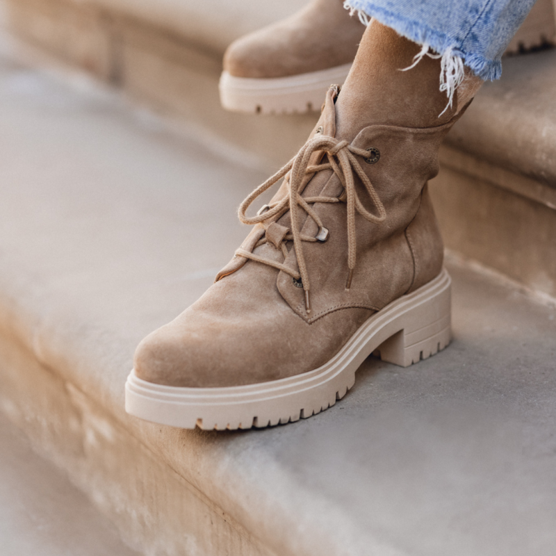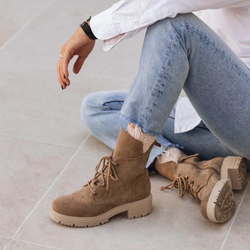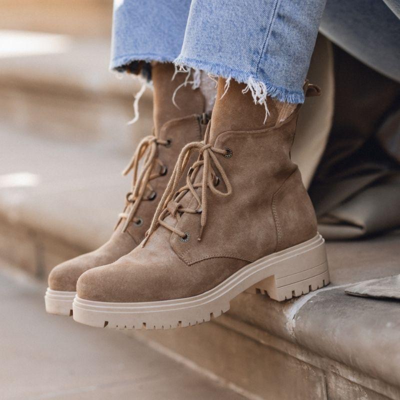 Sznurowane botki na obcasie brązowe - Touch The Sky